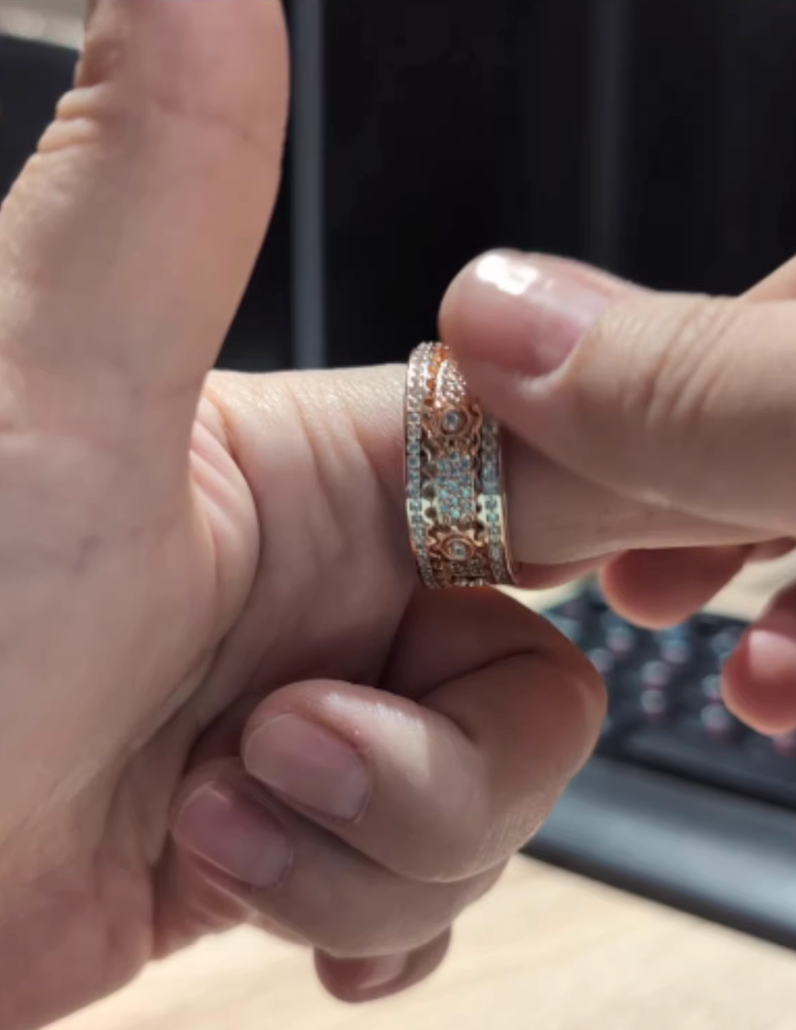 Each ring is individually handcrafted and hand-polished by our small team, with careful attention to every detail. From precision-cutting the rotating components to the final finish, every piece is made to order and thoroughly inspected.